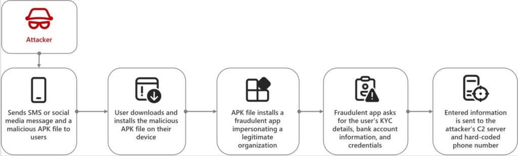 Researchers from Microsoft exposed two such campaigns that were targeting Indian users. Unlike previous campaigns that used malicious links, the current tactics involve directly sharing malicious APK files with Indian mobile users. These files, disguised as legitimate banking apps, exploit the trust users place in well-known institutions.