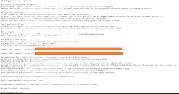This is an image of cyberlock ransom note