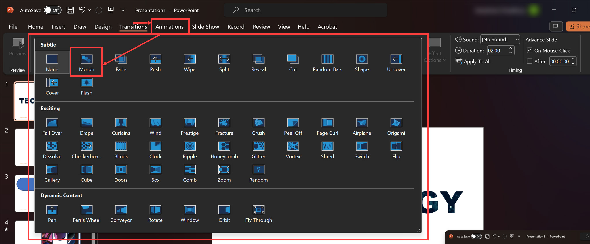 This is an image of screenshot powerpoint select transition 1