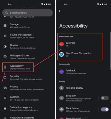 This is an image of accessibility settings